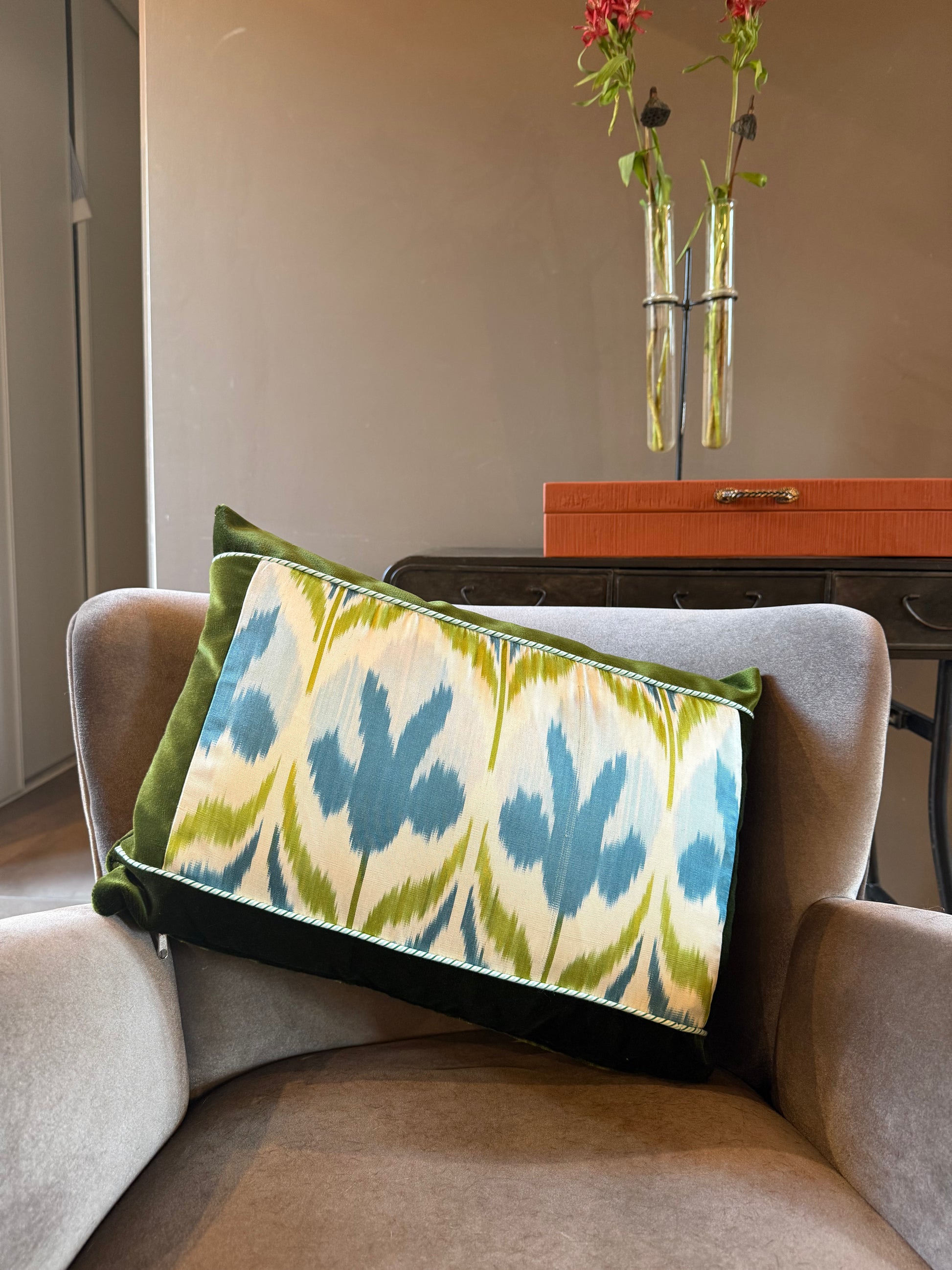 Il velluto italiano e la seta Ikat prendono forma grazie a una manifattura interamente Made in Italy, dove ogni dettaglio dai profili colorati alle cuciture è curato con precisione e passioni.