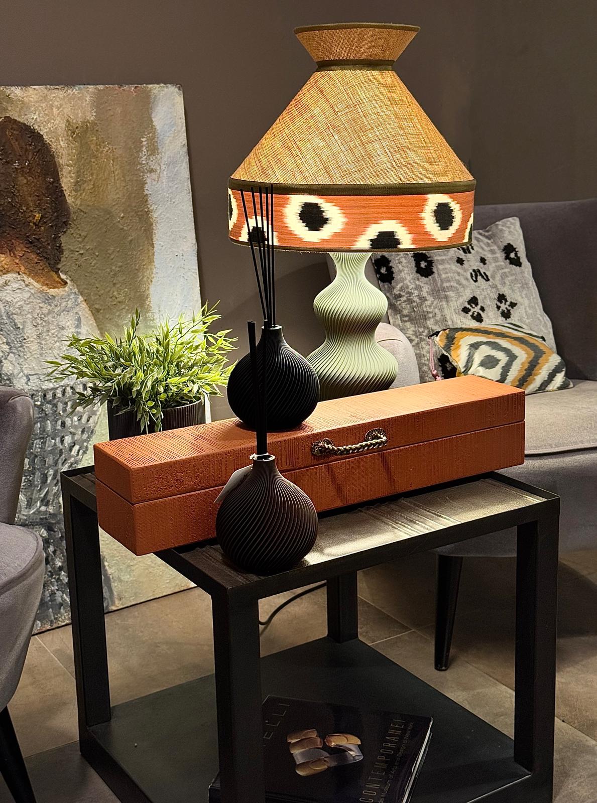 Paralume in juta naturale con inserto in seta ikat fantasia