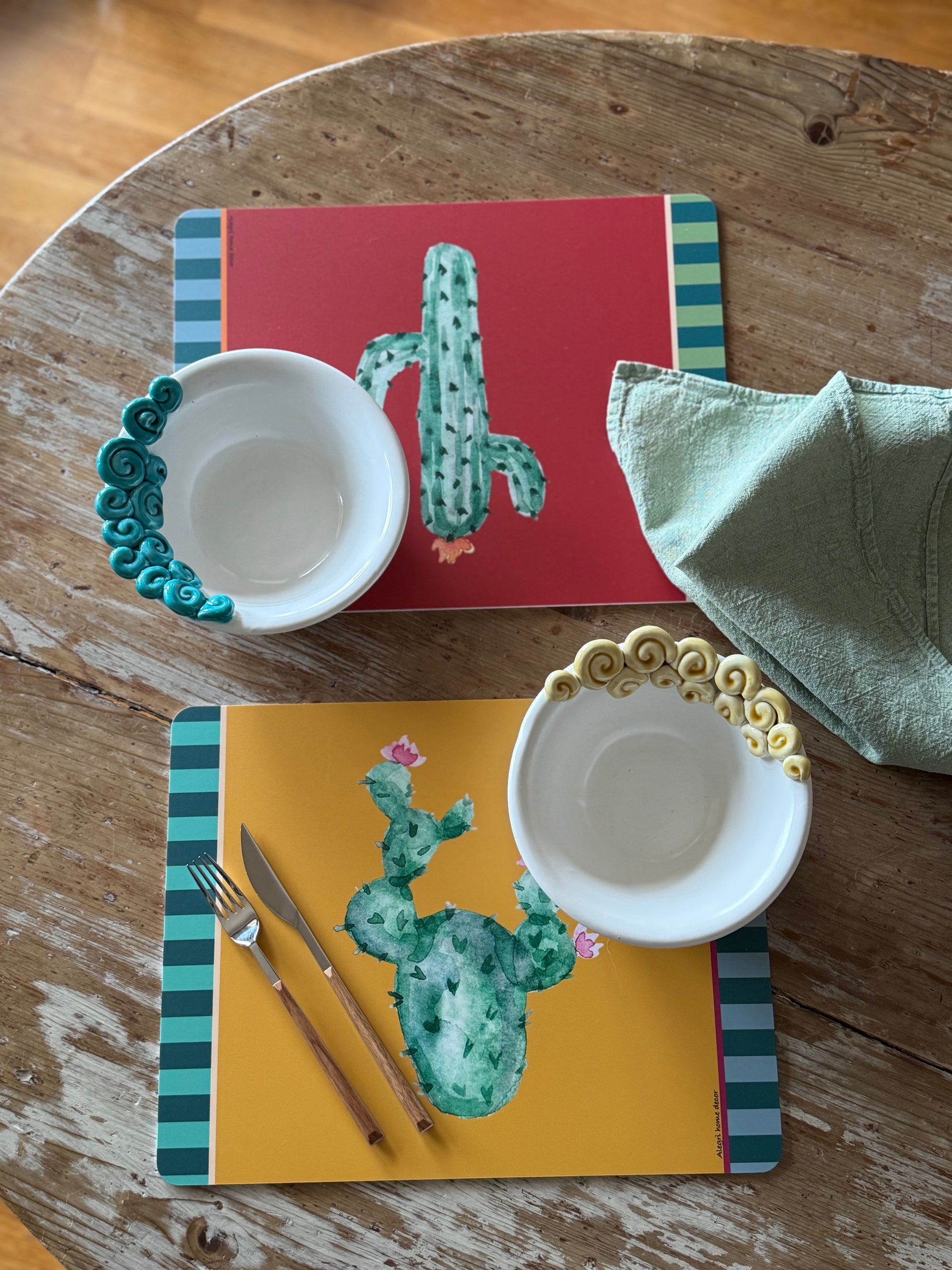 Le tovagliette collezione "Su le spine” hanno grafiche uniche disegnate da me e realizzate con PVC di alta qualità, sono tovagliette durevoli, resistenti agli agenti esterni e riutilizzabili. Facili da pulire, impermeabili e oleorepellenti.